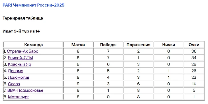 ● «Стрела-Ак Барс» осталась лидером чемпионата, но у «Енисея-СТМ» матч в запасе.