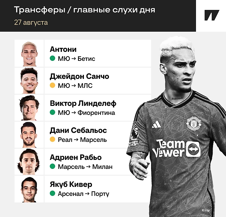 Антони возвращается в «Бетис», Санчо отказал «Роме» из-за отношений с рэпершей. Главные инсайды дня