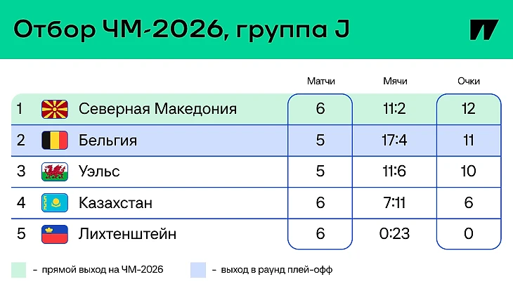 13 октября Уэльс сыграет дома с Бельгией, Северная Македония – с Казахстаном.