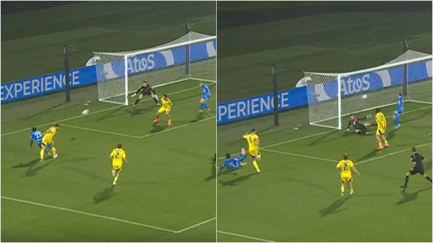 В конце первого тайма уже сам Эллертссон допустил результативную ошибку: промахнулся по мячу в своей штрафной.