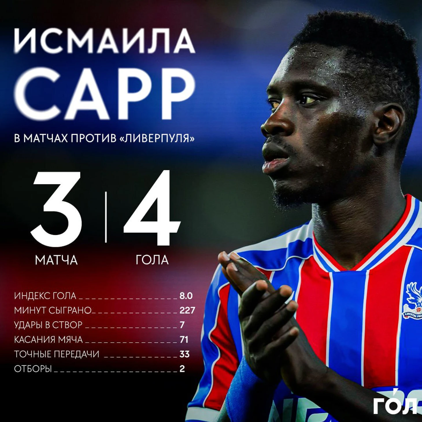 У Сарра уже семь голов в девяти матчах с «Ливерпулем». В 2020-м сенегалец нанес первое поражение в сезоне Юргену Клоппу, в августе помог «Пэлас» забрать Суперкубок Англии.