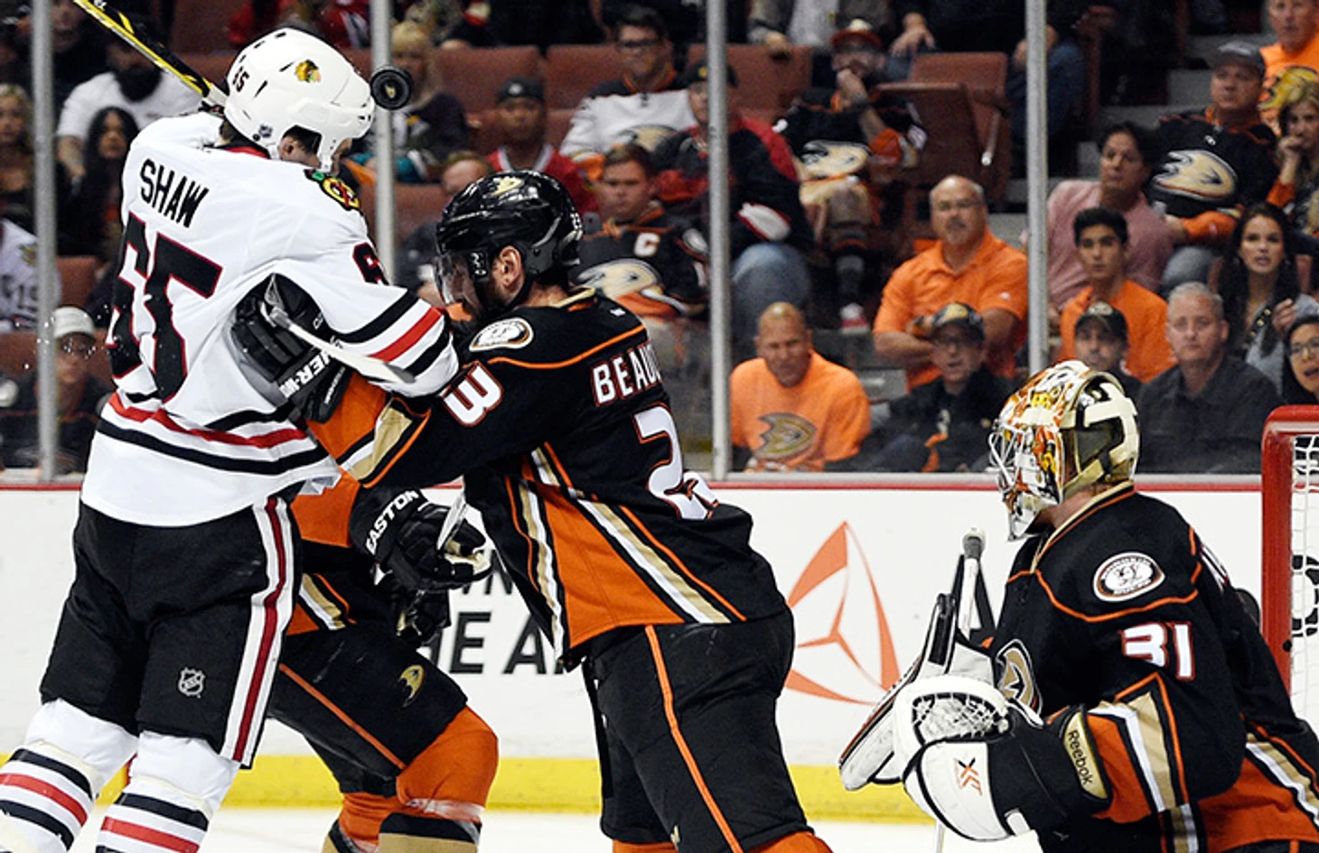 Центр 4-го звена Эндрю Шоу в середине второго овертайма 2-го матча финала Запада оригинально добил шайбу головой в ворота «Анахайма» после броска Патрика Кэйна. Но по правилам умышленно отправлять шайбу в ворота можно только клюшкой.