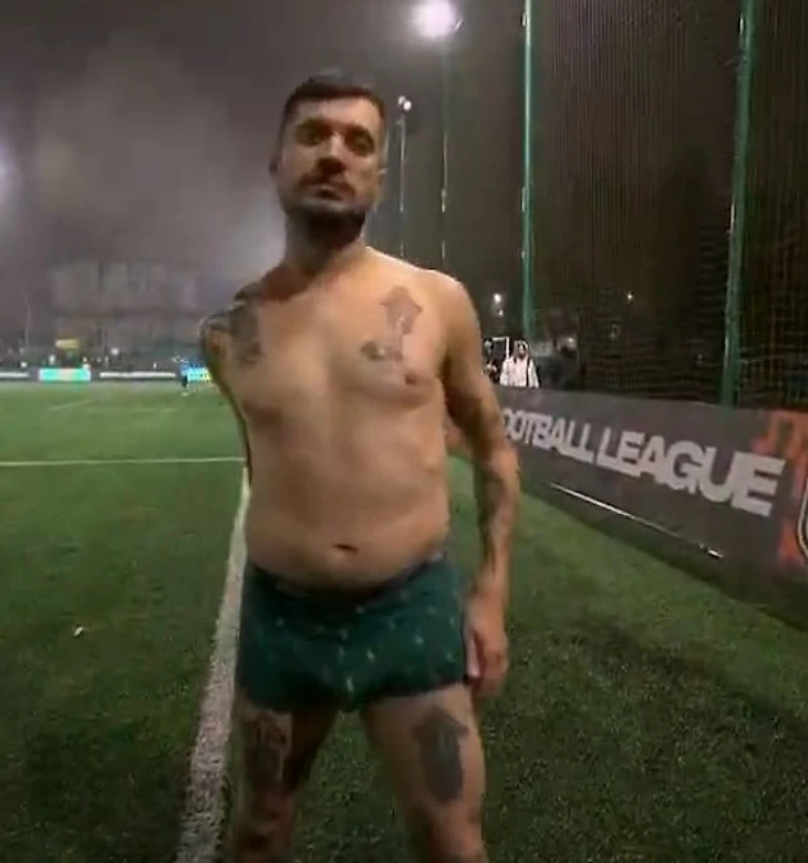 Паша Техник на поле не вышел. Сразу после стартового свистка он разделся, параллельно раздавая всем подряд интервью. Этого ему показалось мало, поэтому Паша решил показать на камеру член – тотальный кринж.