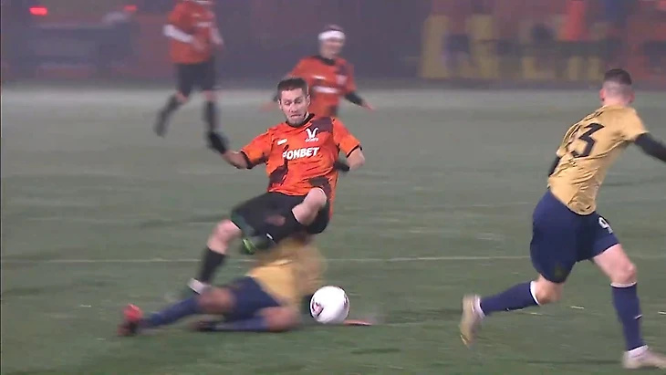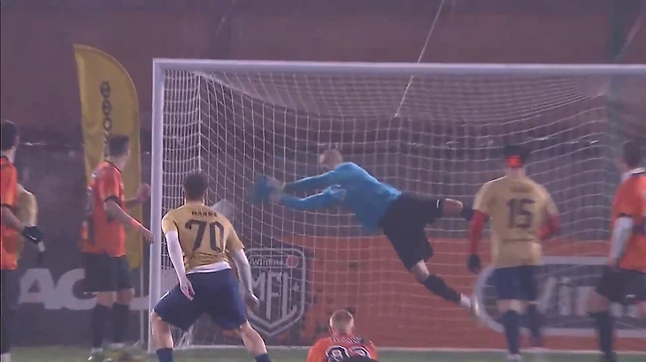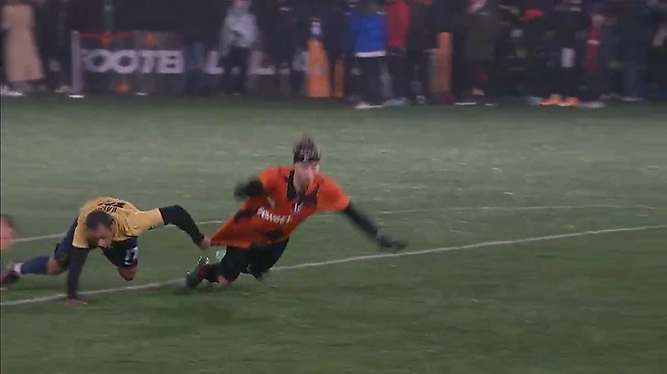 Но еще до перерыва GOATS сравняли счет. Мяч попал в руку Антону Пискунову. Судья посмотрел ВАР и назначил пенальти. Вячеслав Глеб переиграл Алекса – 1:1.