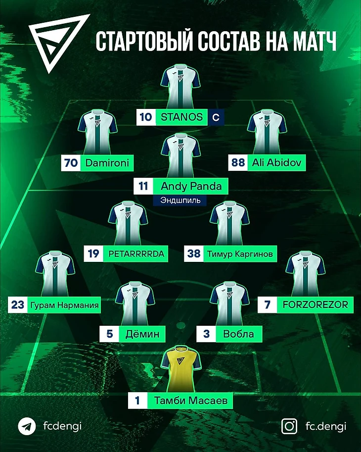 Босс ФК «Деньги» Стас Малиев, вдохновившись перфомансами GOATS, опубликовал медийный состав своей команды.