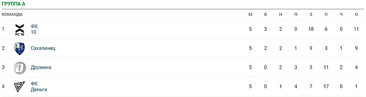Сейчас на третьем месте «Дружина», и именно против команды Дружинина «Деньги» набрали единственное очко. Смотрим на дополнительные показали: разница мячей у «Дружины» – минус 8, у «Денег» – минус 11.
