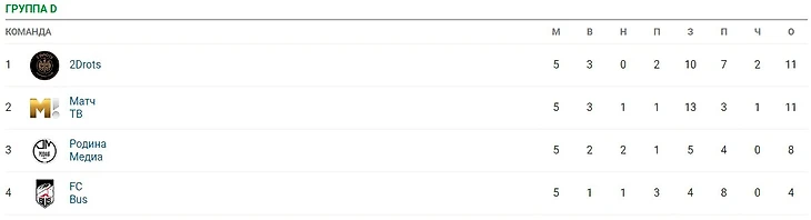 • Что будет, если «РМ», 2Drots и «Матч ТВ» наберут по 11 очков? 2D обыгрывали и «Матч», и «Родину» – первое место у них. Благодаря преимуществу в личных встречах 2D при любом раскладе не смогут упасть ниже второго места.