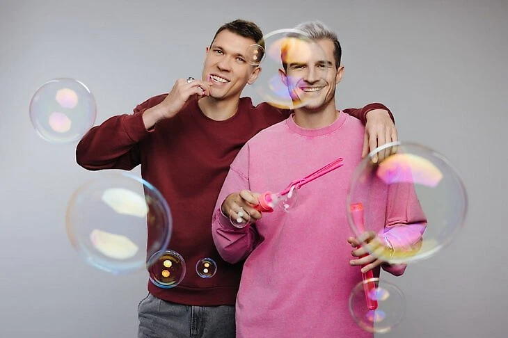 Защитники Никита Чичерин и Максим Грек кайфуют с пузырями.