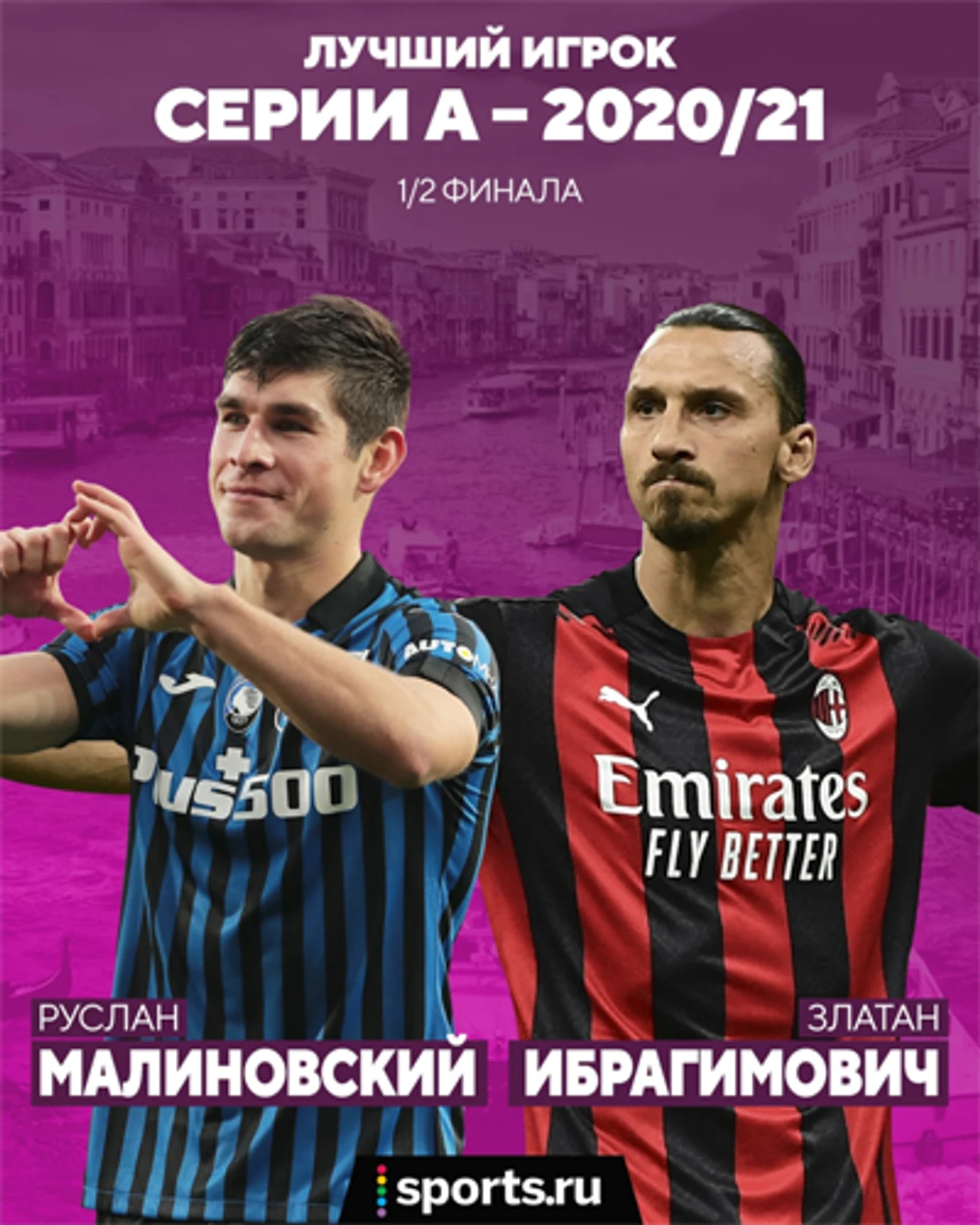В первом полуфинале жеребьевка свела в опросе на лучшего игрока сезона в Серии А Златана Ибрагимовича и Руслана Малиновского.