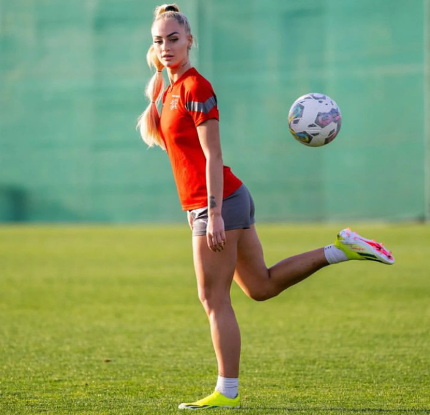 Сегодня завершаем знакомство с представительницами стран группы А Чемпионате Европы по футболу 2024 года. Настала очередь Швейцари 🇨🇭 и Алиши Леманн (ожидаемо). Девушка родилась 21 января 1999 года. Нападающая английской «Астон Виллы» и женской сборной Швейцарии. Является официальным лицом Adidas и EA Sports. Многие издания называют ее самой сексуальной футболисткой. Рекламный пост в ее Instagram (запрещен и порицаем) стоит 280 000$. Состоит в отношениях с Дугласом Луисом, полузащитником «Астон Виллы» и сборной Бразилии. На вопрос в соцсетях Криштиану Роналду или Месси, девушка ответила, что любит футбол поэтому несомненно Месси. Если понравится пост, не забудьте подписаться и оценить пост.