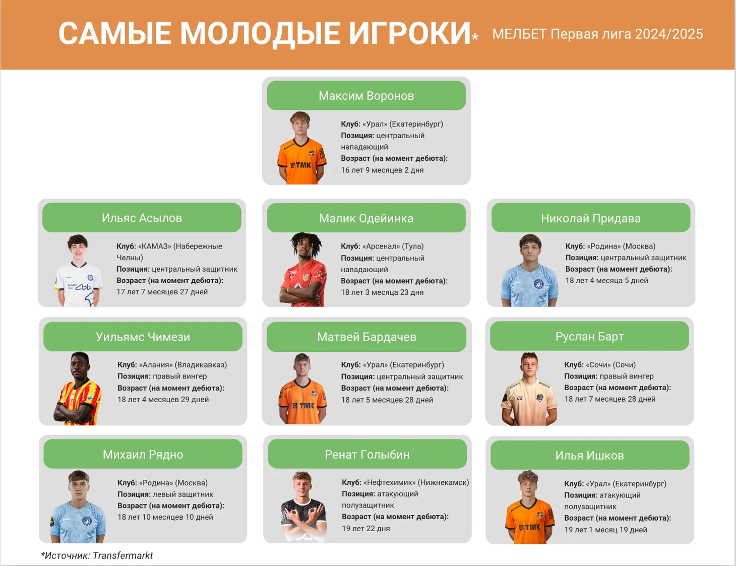 Топ-10 самых молодых игроков, дебютировавших в МЕЛБЕТ Первой лиге сезона-2024/2025