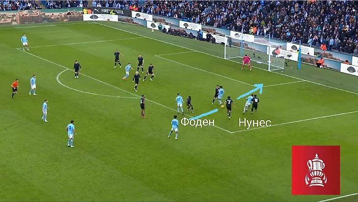 Через минуту после этой двойной замены «Манчестер Сити» снова забил, поскольку Нунес нашел Бобба, а его попытка найти Де Брюйне привела к навесу. Мяч перемахнул через вратаря и влетел в сетку.