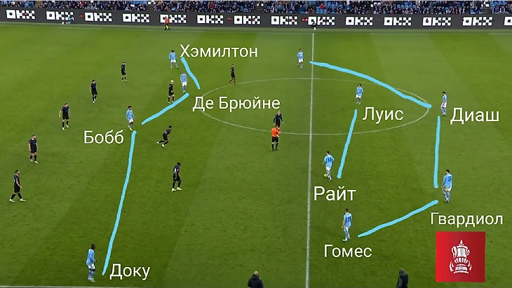 Однако самое громкое празднование дня пришлось на пятый гол «Сити» на 74-й минуте, когда Бобб отдал пас Де Брюйне, который навесил на Доку. И он вколотил мяч в сетку. Кевину потребовалось всего 17 минут, чтобы сделать результативную передачу!