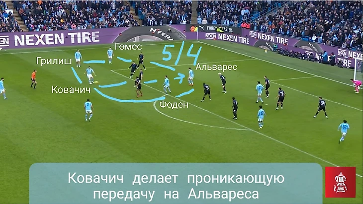 «Манчестер Сити» весь матч придерживался схемы 4-2-3-1, которая плавно переходит 4-2-4.