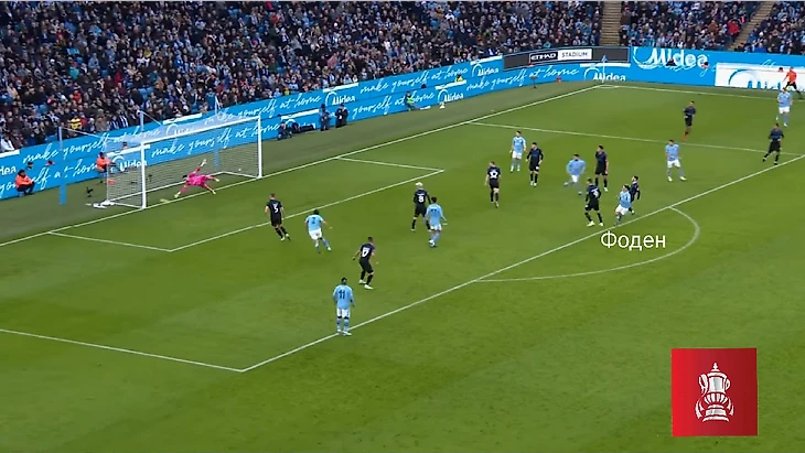 Матеус Нунес и Фил Фоден разыграли комбинацию. Нунес прострелил в штрафную, мяч задел Льюис, но нн сумел переправить мяч в сетку ворот.