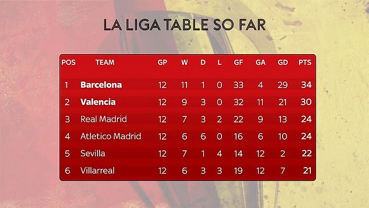 В этом сезоне «Барселона» выиграла 11 из 12 матчей в рамках чемпионата Испании. Единственная потеря очков - ничья 1:1 с мадридским «Атлетико» в октябре.