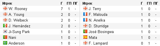 Хорошую форму набрал Уэйн Руни, забивший в 4-ех матчах уже восемь голов, и занимающий первую строчку в споре бомбардиров. Напомним, что в прошлом году, в середине сезона у Уэйна в активе было в 8 раз меньше голов.