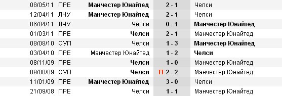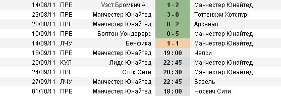 Последние 5 матчей "Манчестер Юнайтед"