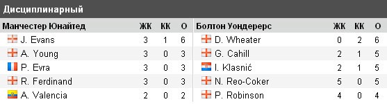 Что же до ситуации с травмами, то ничего нового в целом нет. Всё так же отсутствует Эшли Янг (небольшая вероятность его появления на поле), Даррен Флетчер (шотландец, напомним, приостановил свою карьеру), Майкл Оуэн, Том Клеверли и Неманья Видич (серб вылетел до конца сезона). Ситуация обостряется небольшими повреждениями у Андерсона, Джонса и Смоллинга. Опять же не стоит удивляться, если в центре защиты окажется Майкл Каррик.