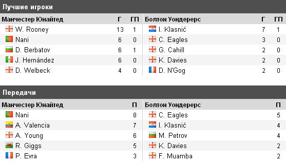 Команда Фергюсона забивает на «Олд Траффорд» уже в 40 подряд матчах Премьер Лиги, с декабря 2009 года. Если они забьют и в матче с «Болтоном», то это будет их лучший показатель в эпоху Премьер Лиги, и они будут в шаге от повторения своего клубного рекорда, когда забивали в 42-х домашних матчах подряд с февраля 1955 по февраль 1957.