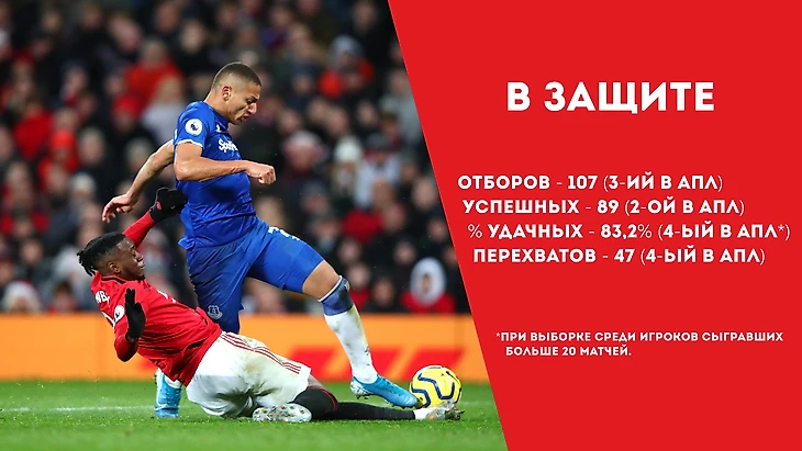 57 попыток (4-ый в АПЛ) и 37 успешных (3-ий в АПЛ), то есть 64,9% успеха. Топовый показатель в АПЛ среди защитников.