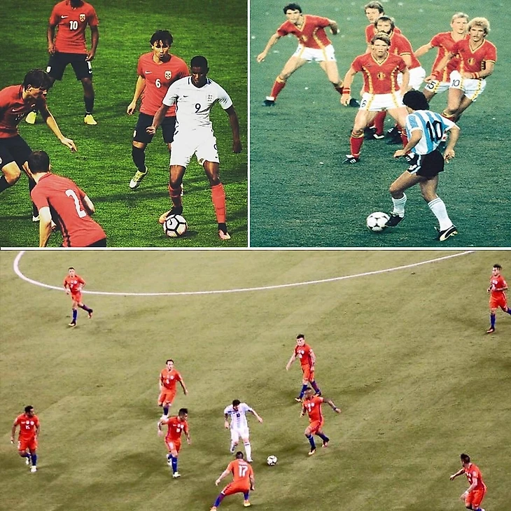 Юное дарование "Юнайтед" в окружении игроков молодежной сборной Норвегии.