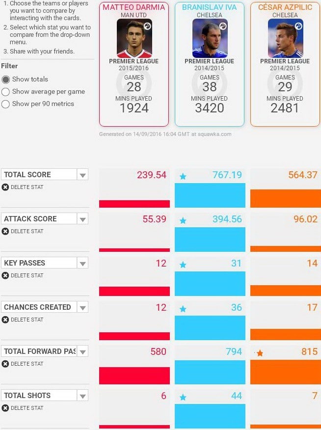 Если сравнивать Дармиана с крайними защитниками «Челси» сезона 2014/15 (сезон, в котором команда в большинстве матчей играла как единый механизм), то выходит вот такая картина: