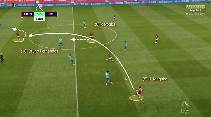 Магуайр также использует искусные пасы, например, против «Борнмута», когда он нашел Фернандеша. Погба получил мяч, передал его Мате, и «Юнайтед» вскоре создал хороший момент для навеса. Опять же, импульс от Магуйара был важен.
