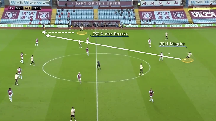 В матче против «Астон Виллы» Магуайр выдал пас практически на 40 метров на Ван-Биссаку по флангу. Мяч был послан с огромной скоростью и точностью, и в конечном итоге «Юнайтед» выиграл вбрасывание.