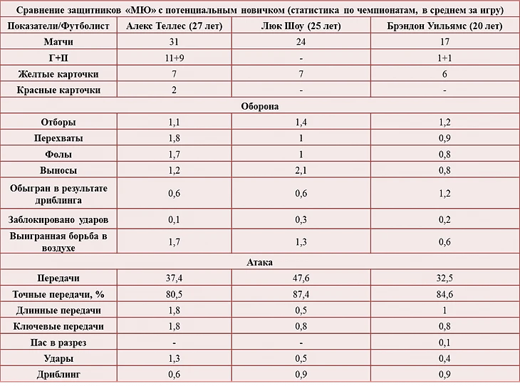 Сравнительная таблица статистических показателей рассматриваемых футболистов наглядно демонстрирует, что бразилец на данном этапе (с учетом различий в уровне чемпионатов) превосходит своих конкурентов за место в основе «Юнайтед» практически по всем параметрам. Если атакующие навыки, учитывая его статистику, вопросов не вызывали, то солидное преимущество по части обороны несколько удивляет.