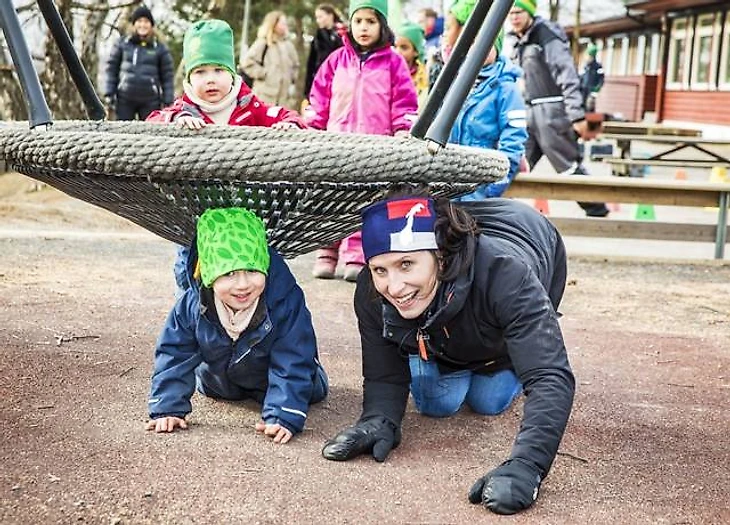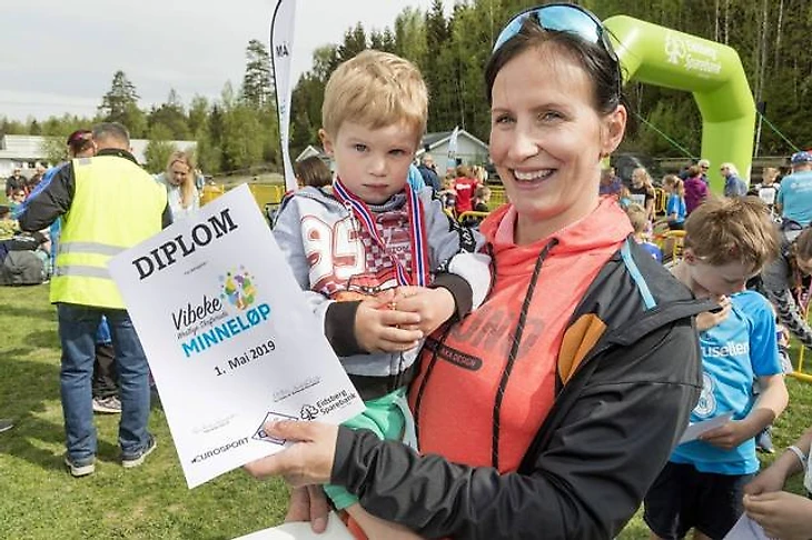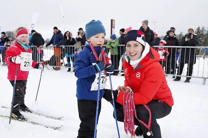 В Коннеруде Марит встречает на финише участников гонки памяти Вибеке Скофтеруд для детей и молодежи. Все они получают заслуженную медаль.