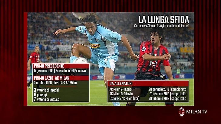 Тренер "Милана" в качестве игрока ломбардийского клуба сыграл в 22 поединках против "Лацио" в различных турнирах, проведя на поле более 1400 минут.