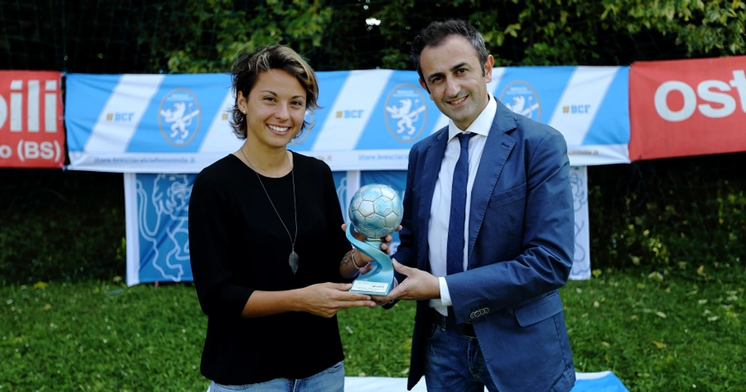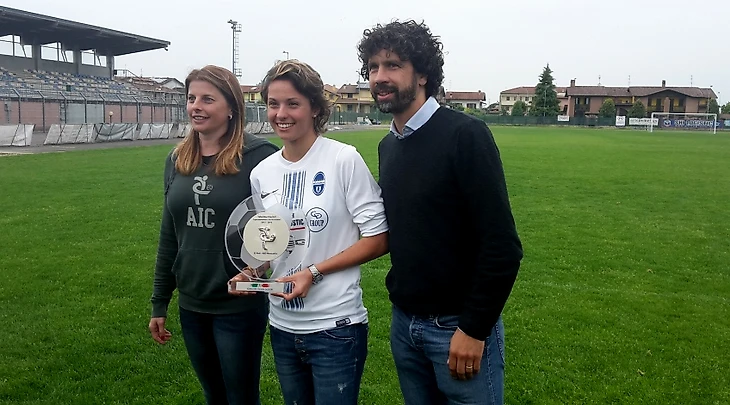 Джачинти с призом "Лучший бомбардир Серии А 2015/16", лично вручённым многолетним президентом Associazione Italiana Calciatori Дамиано Томмази (экс-футболистом "Ромы"). Валентина обогнала в гонке за призом легендарную Патрицию Панико.