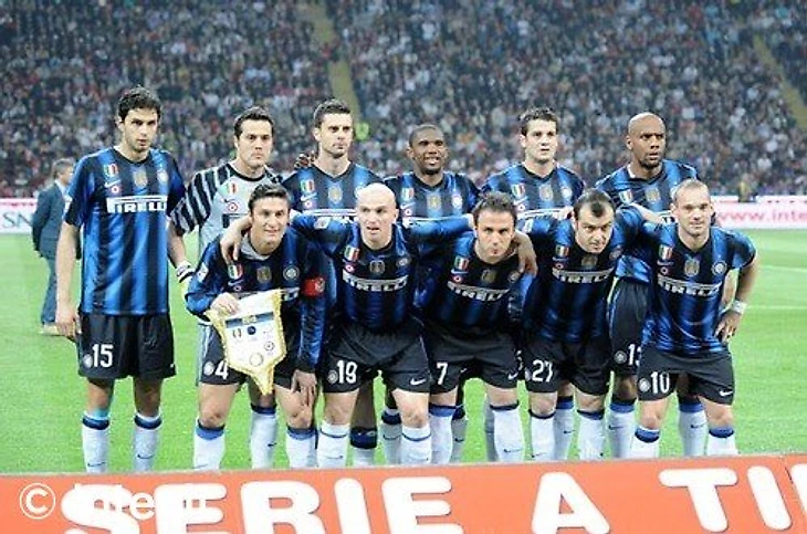 "Интернационале" перед матчем 31-ого тура. Верхний ряд : Раноккья, Жулио Сезар, Мотта, Это'о, Киву, Майкон; нижний ряд : Дзанетти, Камбиассо, Паццини, Пандев, Снейдер.