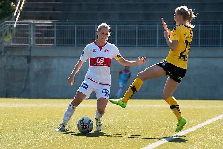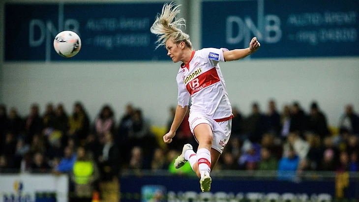 За "Каупангер" Ховланд играла практически без замен и была главной звездой клуба. На фото 22-летняя Стине в матче за клуб из Сонгдаля.