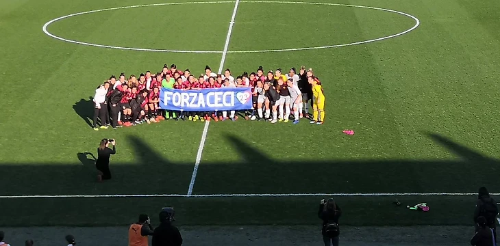 Март нынешнего года. Девушки из "Милана" и "Ромы" выступили с тёплой поддержкой.