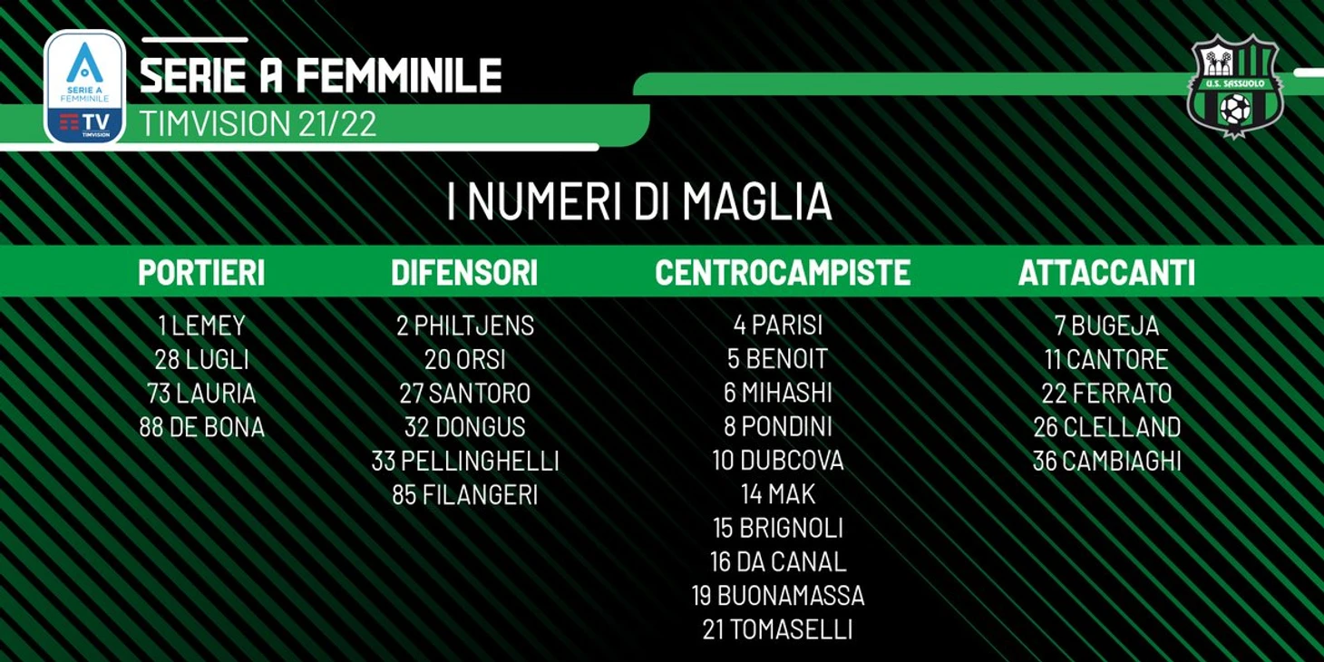 Пришли: Tamar Dongus (Florentina SG), Sofia Cantore (Juventus), Lana Clelland (Fiorentina)