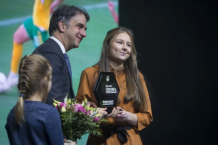 Насыщенный календарный год, увенчанный победой в международном турнире в составе сборной и выигрышем чемпионского титула с "Гинтрой", продолжился и в Италии, в том же режиме нон-стоп. Футболистки сборной Литвы под руководством Римантаса Викторавичюса приняли участие в международном турнире Our Game в Ереване (в апреле), одержали там самую крупную победу в своей истории и стали его победителями - во втором поединке турнира литовские футболистки добились крупной победы, выиграв у сборной Ливана со счетом 7:1, и улучшили рекорд национальной команды по числу забитых мячей [прим. - до этого в активе женской сборной Литвы была победа над командой Латвии в 2007 году, завершившаяся с результатом 6:0. Хет-трик в этом поединке записала на свой счет Риманте Йонушайте, дублем отличилась Люция Вайтукайтите, еще по одному мячу в активе Угне Лаздаускайте и Лауры Рузгуте].
