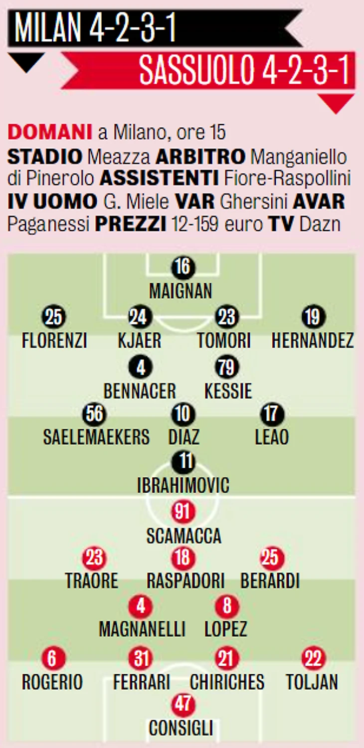 Стефано Пиоли попадался на финт "Сассуоло", в прошлом сезоне красно-чёрные проиграли дома. "Милан" доминировал, но забил лишь один мяч, а затем получил два выпада и потерпел поражение. Зная "успокаивающую" модель игры чёрно-зелёных, которая не меняется ни при одном наставнике, Пиоли сегодня постарается достигнуть преимущества с самого начала встречи и не тянуть с итогом матча.