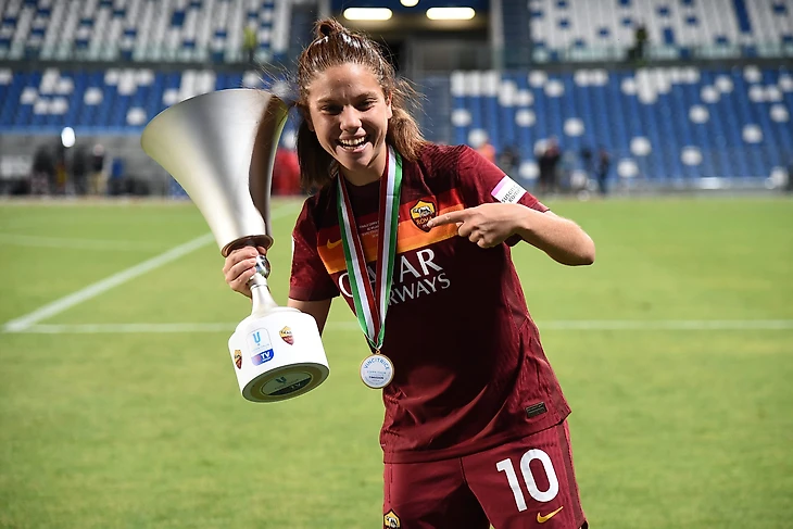 Летом Баваньоли оставила пост, перейдя на административную работу, главным тренером стал талантливый специалист Алессандро Спунья. Мистер Спунья много работал с молодёжными командами в Турине, пока в 2018-ом не углубился в женский кальчо [прим. - «Примавера Ювентуса»]. Наставник получил в своё распоряжение классный коллектив и в первый же сезон сумел вывести «Рому» в Лигу чемпионов, заняв второе место в Серии А. Ещё большего успеха Спунья и его футболистки добились в нынешнем сезоне: выигрыш Суперкубка Италии, выход в плей-офф Лиги чемпионов и уверенное лидерство в чемпионате с отрывом от сильнейшего «Юве». Важную роль в тренерских схемах «Ромы» играет спортсменка сборной Италии и наша героиня рубрики, проводящая в Риме четвёртый сезон.