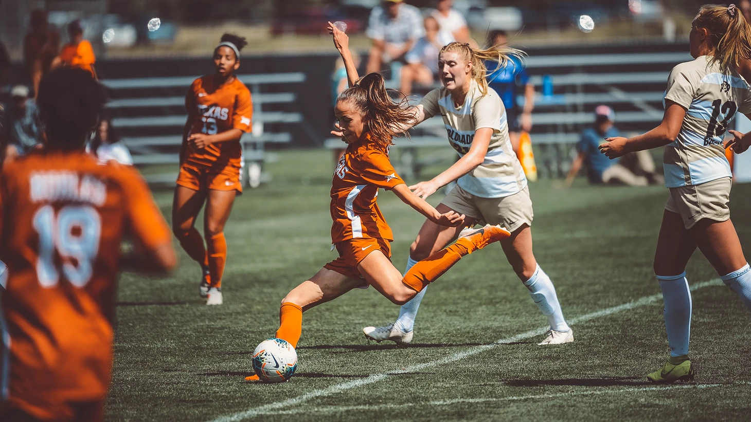 Переехав в Остин, наша героиня совмещала учёбу и футбол - новый командой стали «Лонгхорнс» из студенческой лиги NCAA.