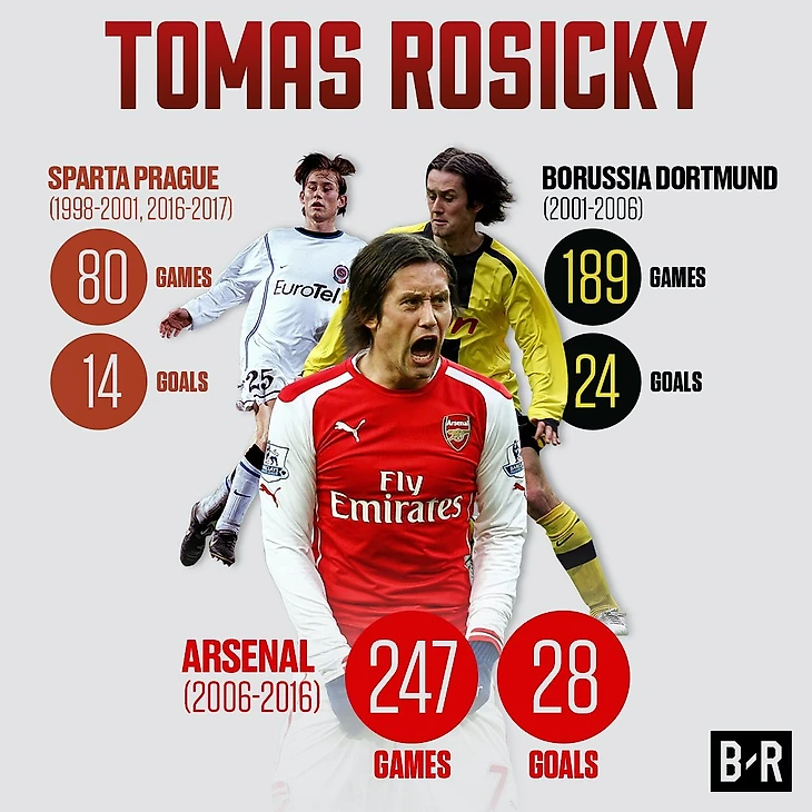 За плечами у Росицки 10 лет выступлений в Премьер-Лиге за "канониров". В течение этого времени Томаш завоевал два Кубка Англии и сыграл за "канониров" всего лишь 247 матчей. Конечно, из-за многочисленных травм Росицки никогда не являлся твердым игроком стартового состава в команде Арсена Венгера, но при этом был "любимчиком" болельщиков "Арсенала". Жаль, но частые травмы не позволили "Моцарту" реализовать свой талант в полной мере.