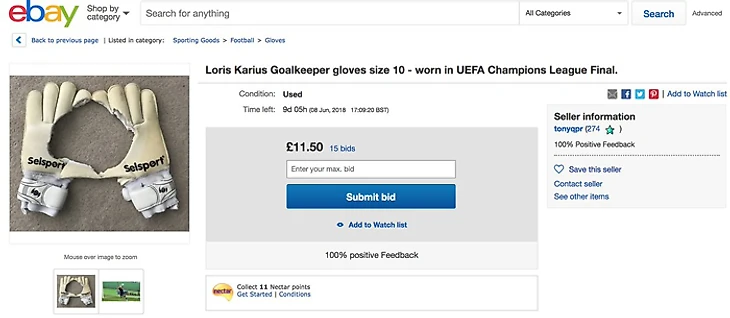 Раскрыта возможная причина ляпов Кариуса в финале ЛЧ. На ebay продаются перчатки Лориуса с огромной дыркой