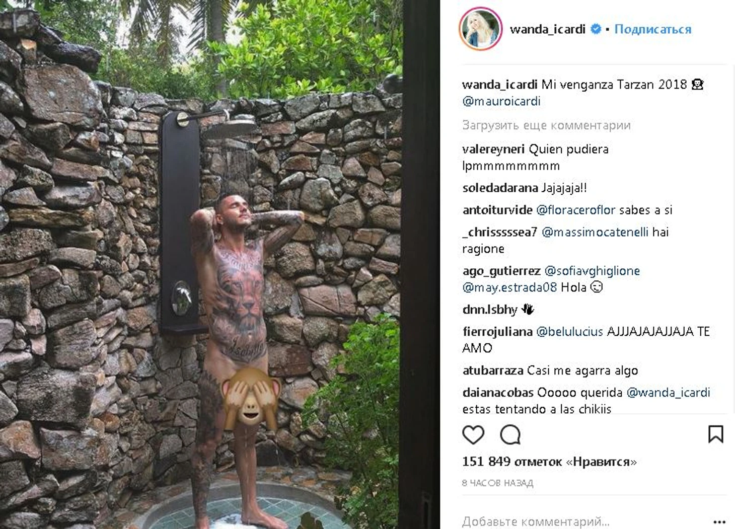 Супруга Икарди отомстить аргентинцу, той же монетой – Ванда опубликовала фото Мауро во время принятия душа с небольшим ретушированием. "Моя месть, Тарзан", - подписала фото она.