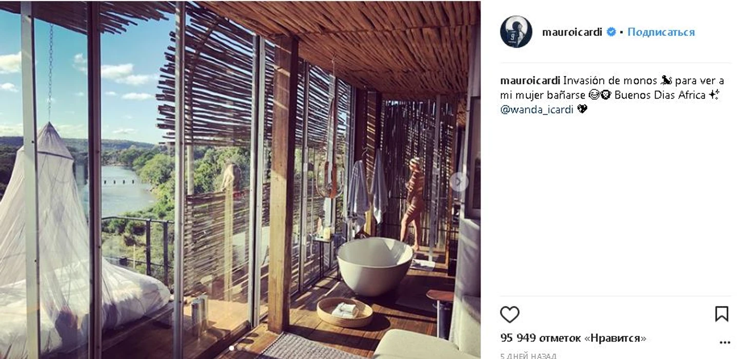 Пару дней назад Икарди, пытаясь показать, как обезьяны за ним с женой подглядывают в окна, "случайно" опубликовал в инстаграме фото обнаженной жены, которая готовилась принять душ.