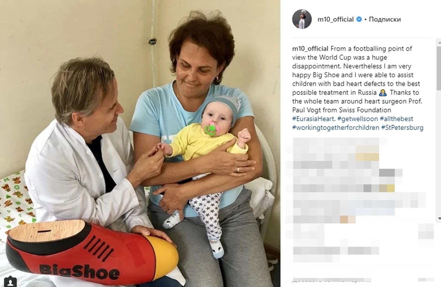 "С футбольной точки зрения Чемпионат мира был огромным разочарованием. Тем не менее, я очень счастлив, что Big Shoe смогла помочь детям с пороками сердца пройти наилучшее лечение в России 🙏 🏼 Спасибо, всей команде кардиохирурга профессора Пола Фогта из швейцарского Фонда", - написал Месут Озил в инстаграме.