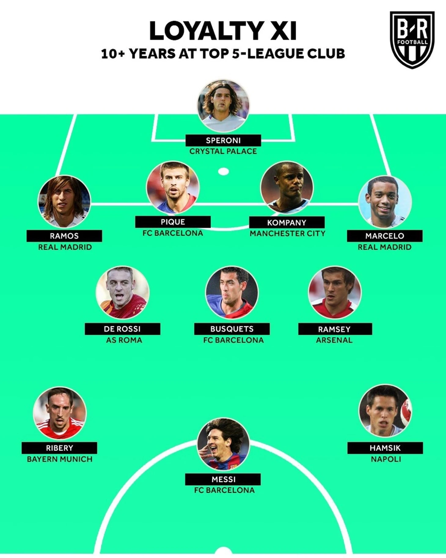 Bleacher Report Football представил символическую сборную составленную из самых преданных игроков последнего десятилетия.
