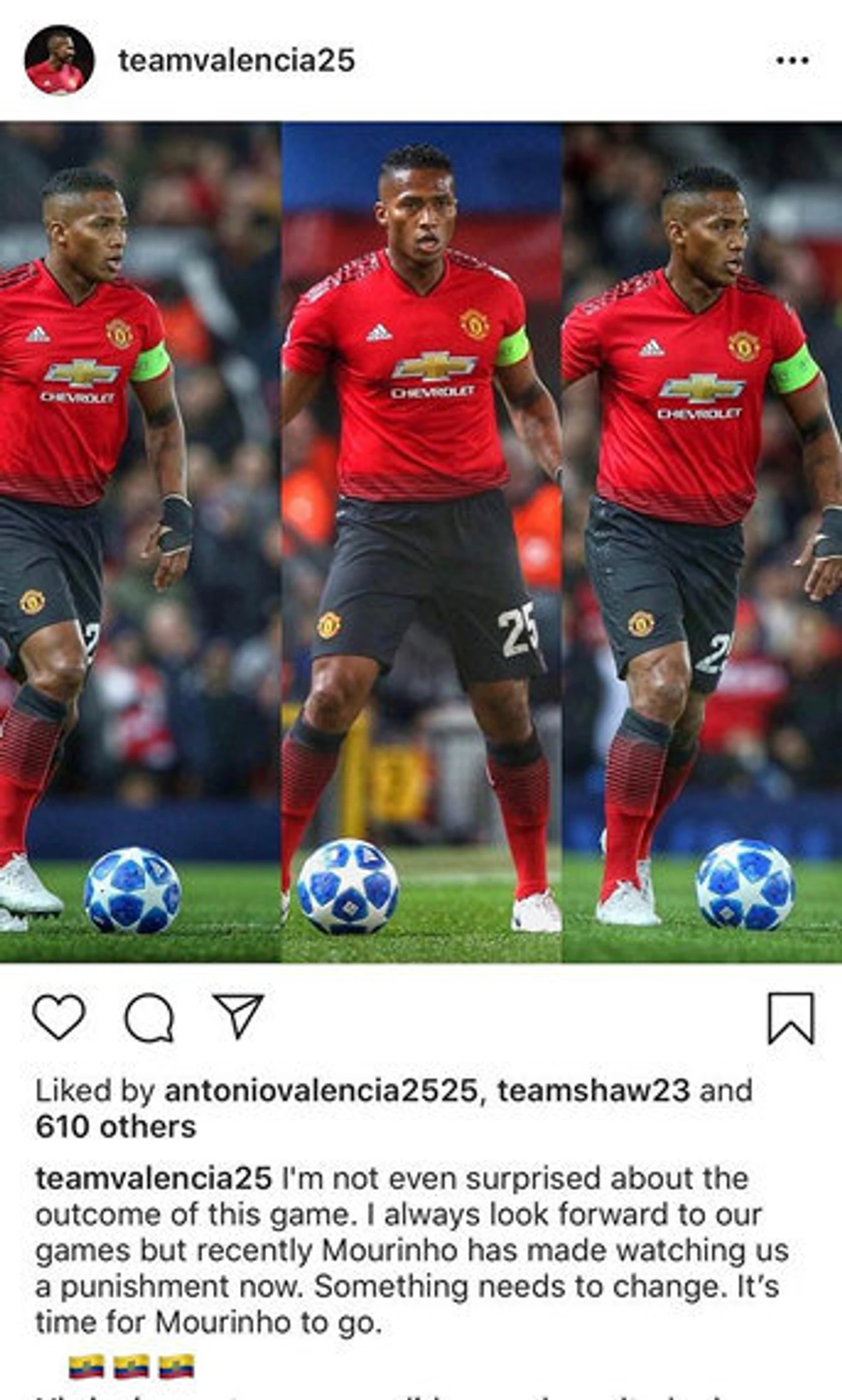 Капитан «Манчестер Юнайтед» Антонио Валенсия рискует попасть в неприятную ситуацию, которая очень похожа на историю Глушакова и Ещенко. После матча с «Валенсией» во вторник эквадорец поставил лайк под постом в своей фан-группе в инстаграме, который призывал «Юнайтед» расстаться с Жозе Моуринью.