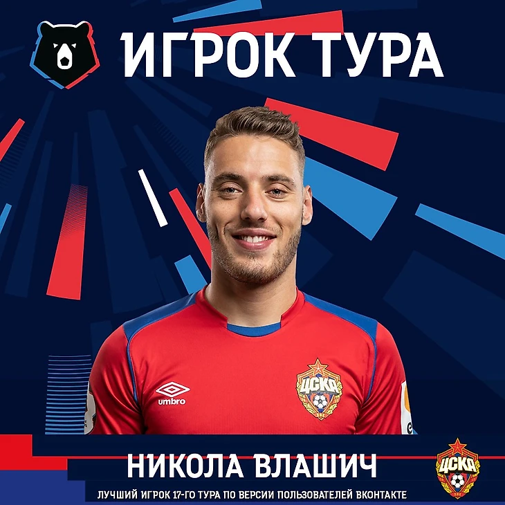 РПЛ: Никола Влашич стал лучшим игроком 17-го тура по версии пользователей ВКонтакте в совместном голосовании Российской Премьер-Лиги, а также телеканалов МАТЧ ПРЕМЬЕР и МАТЧ ТВ.