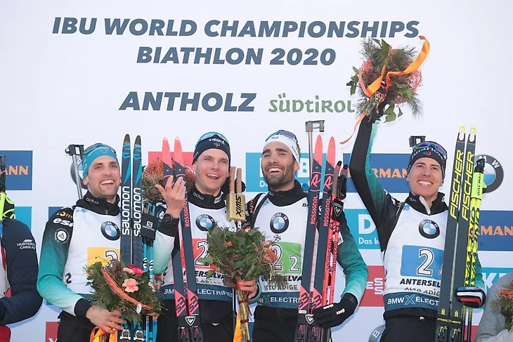 Подиум французской эстафеты в Антхольце